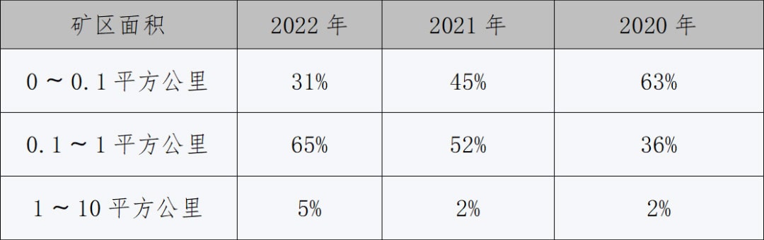 2022年新設砂石礦權規模分布
